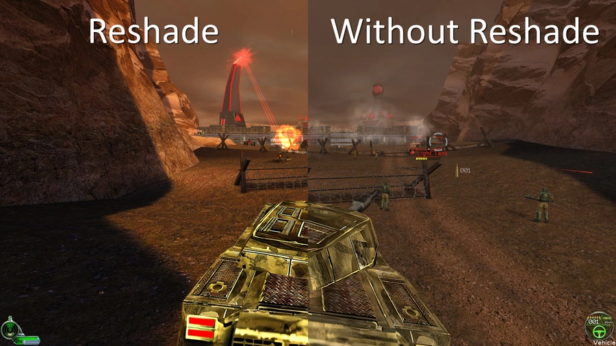 Сравнение графики с модом AI Enhanced Textures for C&C: Renegade — в первом случае с установленным Reshade, а во втором — без него.